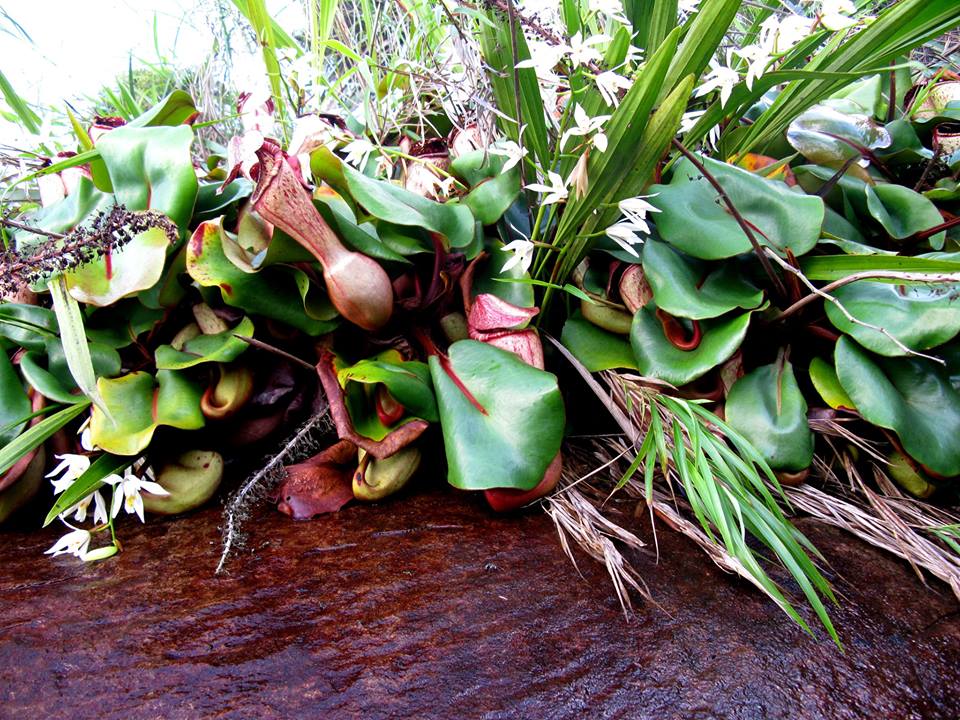 | Nepenthes clipeata in its natural habitat with some orchid species (Foto by Dony) |